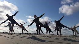 En omdat het zeewater best lekker van temperatuur is, lopen we gewoon de zee in om daar een heuse zeester na te doen die moeiteloos transformeert naar een albatros. Mijn kleding is doorweekt en overal kleeft zand, maar dat weerhoudt mij niet om samen met de andere deelnemers te rennen langs de vloedlijn en te dansen in de wind. Hoe gek kun je zijn?