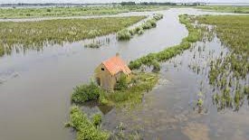 En dus ploeteren we ons – eenmaal aangekomen op het eiland – de rest van de dag door zompige, modderige paden. Worden de voeten nat, de handen koud en blaast de wind ons zowat van de dijk af. Soms moeten we halverwege omkeren, omdat een pad door het opstuwend water met geen mogelijkheid begaanbaar is. Dan zoeken we een andere doorsteek om uiteindelijk na 5,5 uur moe, hongerig en koud bij de herberg aan te komen.