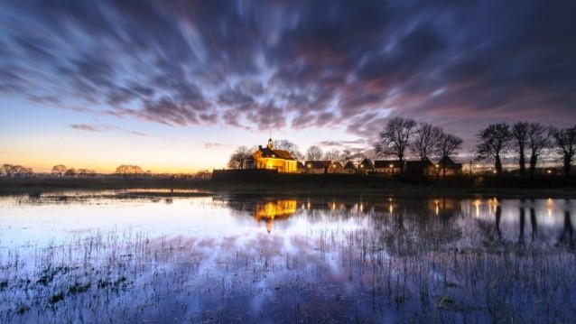 Hé… dat hielp! Het fietsen werd een stuk lichter en ik genoot weer volop van de omgeving die ondanks de regen nog altijd mooi was. Maar eenmaal aangekomen in Schokland begon het harder te regenen en na een leerzaam bezoekje aan het Schoklander museum plensde het regenwater met bakken uit de hemel. Nog 30 km terug naar huis in de stromende regen… Ondanks al mijn mindfulnessvaardigheden kon ik daar niets goeds meer van maken. Het duurde dan ook niet lang of ik was klets- en kletsnat; tot op mijn ondergoed.