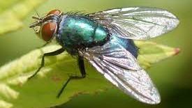 Na weken van veel te veel regen is het nu weer tropisch warm. En met de warmte zijn ook de vliegen uit alle holen en gaten tevoorschijn gekomen. En steeds als het me met veel moeite lukt om er eentje naar het hiernamaals te jagen, of toch – door mijn goedgemikte klap – op zijn minst een flinke koppijn te bezorgen, duikt er weer een volgende op om het irritatiestokje van zijn voorganger over te nemen. Onschuldige burgers irriteren; hoe durven ze! Overal op gaan zitten waar ze met hun vuile poten vanaf moeten blijven. Mijn fruit bijvoorbeeld en mijn heerlijk verse salade die ik zojuist gemaakt heb. Of nog erger: de vis die net uit de oven komt.