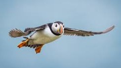 Ik geniet ontegenzeggelijk en de wandeling is een sportieve uitdaging, maar met ‘vogels spotten’ heeft het weinig van doen. Als troost kan ik nog nét voor sluitingstijd in de enige winkel van het havenstadje een pluche papegaaiduiker kopen. Zó leuk: die zet ik vanavond in mijn bed.