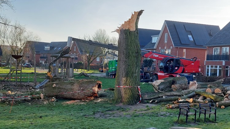 Maar de snik in haar stem verraadt dat het wél ernstig is wat hier gebeurt. Ook ik voel een flinke brok in mijn keel. Ik zeg maar even niets. Onze buurtboom van honderden jaren oud heeft het leven gelaten. Ze had met gemak nog zo veel ouder kunnen worden.
