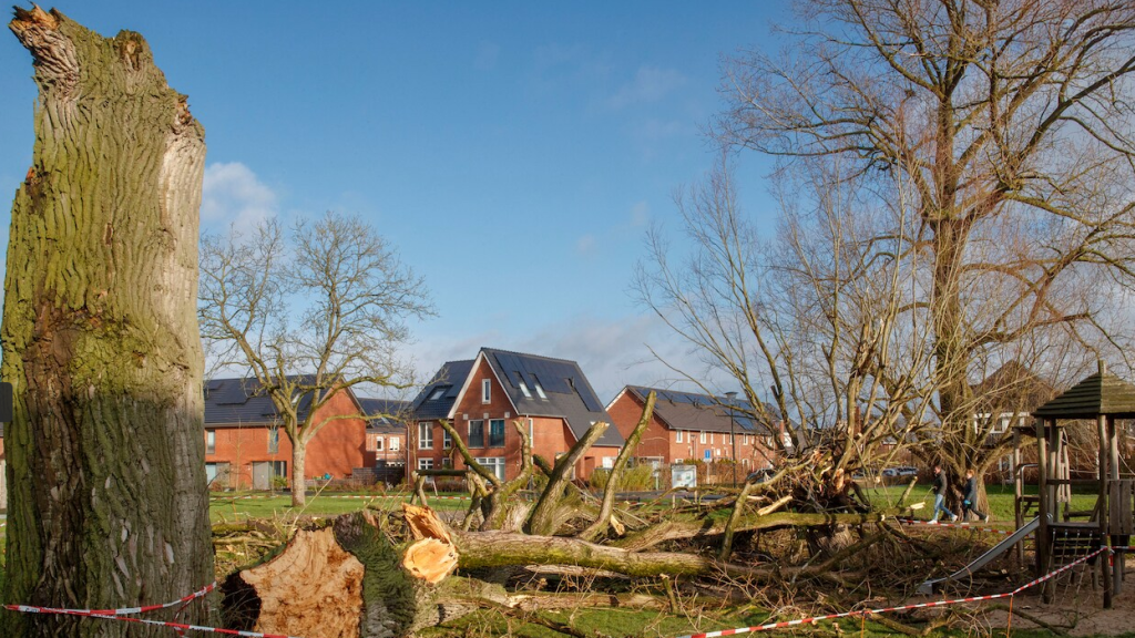 “Een windvlaag gaf de grote boom de genadeklap.” Een buurvrouw vertelt dit, terwijl ook zij met grote ogen naar het tafereel staart. “Het gebeurde in een fractie van een seconde. Ik liep juist met de hond voorbij. Nog een geluk dat er op dat moment geen kinderen onder de boom speelden en dat de grote takken niet op een auto of een huis zijn gevallen. We mogen van geluk spreken dat er niets ernstigs is gebeurd”, zegt ze.