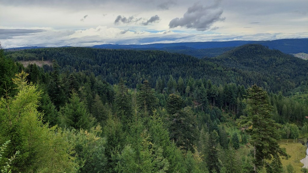 ‘Oben angekommen, bietet sich Ihnen ein spektakulärer 360-Grad-Blick über die endlosen Wälder und beeindruckenden Täler des Schwarzwalds.’