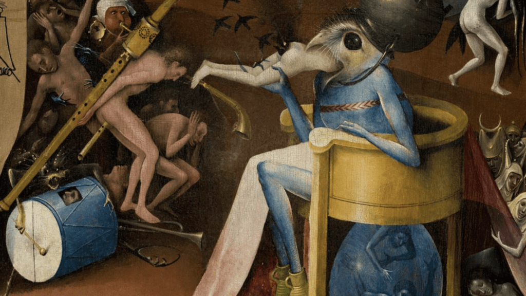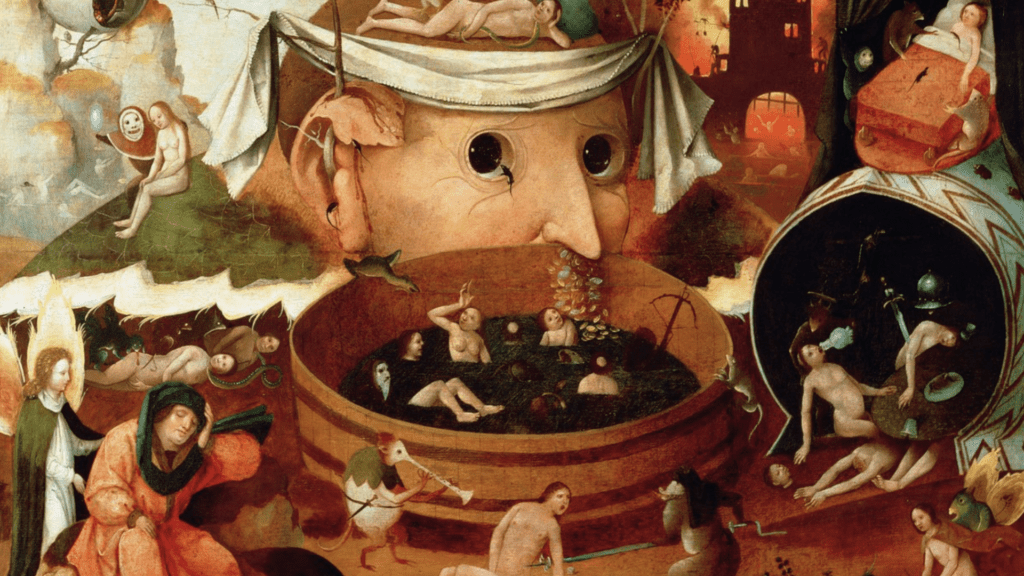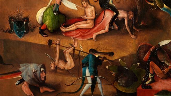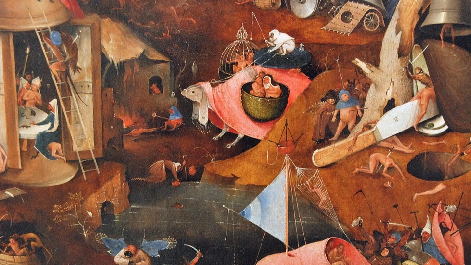 Bosch maakte vooral drieluiken. Op het linker luik schetst hij daarbij steevast het aardse paradijs waarin alles goed, fijn en lief is. Het middendeel verbeeldt het leven van de losbandige mens die sterk gedreven wordt door macht, hebzucht en lust. En op rechts volgt dan onherroepelijk de eindbestemming van deze zondige mens: de hel en het vagevuur.